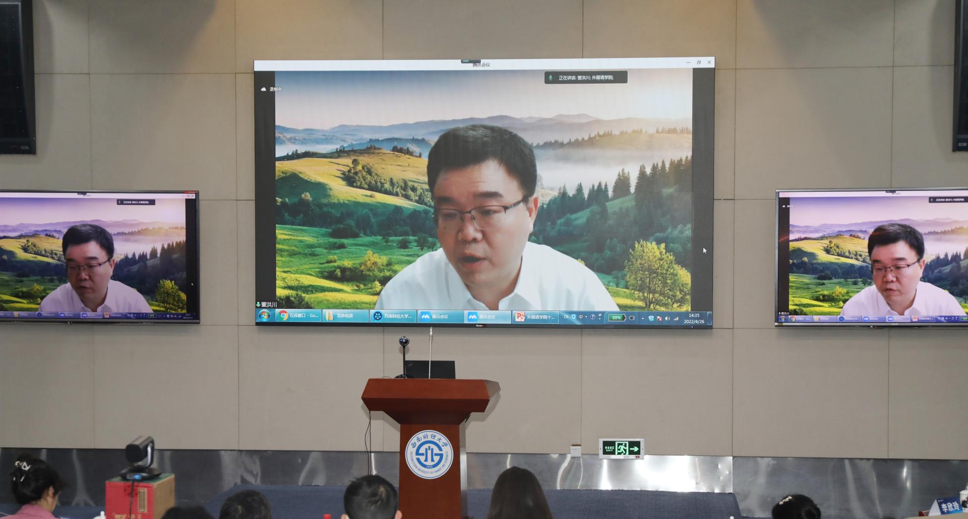 張家瑞做“學(xué)院十四五規(guī)劃”專題匯報(bào),回顧了學(xué)院“十三五”時(shí)期取得的階段性成果,分析了“十四五”時(shí)期學(xué)院發(fā)展面臨的機(jī)遇和挑戰(zhàn)。學(xué)科建設(shè)咨詢委員會(huì)主席、四川外國(guó)語(yǔ)大學(xué)校長(zhǎng)董洪川發(fā)言,希望加強(qiáng)交流,互學(xué)互鑒,共同推動(dòng)學(xué)科專業(yè)建設(shè)。其他委員表示,將為學(xué)院“一流學(xué)科”“一流專業(yè)”建設(shè)出謀劃策,提升學(xué)院學(xué)科專業(yè)建設(shè)水平。