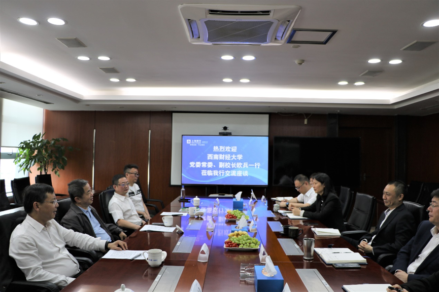 調(diào)研中,歐兵對上海銀行成都分行長期以來給予學(xué)校的支持和幫助表示衷心的感謝。歐兵介紹了學(xué)校97年的辦學(xué)歷史和近年來學(xué)校事業(yè)發(fā)展取得的成效,希望進(jìn)一步深化交流合作,將雙方的資源優(yōu)勢、創(chuàng)新優(yōu)勢轉(zhuǎn)化為合作優(yōu)勢和發(fā)展優(yōu)勢,開展人才培養(yǎng)、產(chǎn)教融合及成果轉(zhuǎn)化等領(lǐng)域的多元化、全方位合作,共同助力成渝地區(qū)雙城經(jīng)濟(jì)圈和西部財經(jīng)人才高地建設(shè)。國際商學(xué)院分黨委書記張劍波介紹了學(xué)院的發(fā)展沿革和就業(yè)工作基本情況。學(xué)院院長王玨介紹了學(xué)院在學(xué)科建設(shè)、人才培養(yǎng)、科學(xué)研究上的改革實踐。學(xué)院副院長葉作亮介紹了學(xué)院提高人才培養(yǎng)質(zhì)量的教育教學(xué)綜合改革探索。