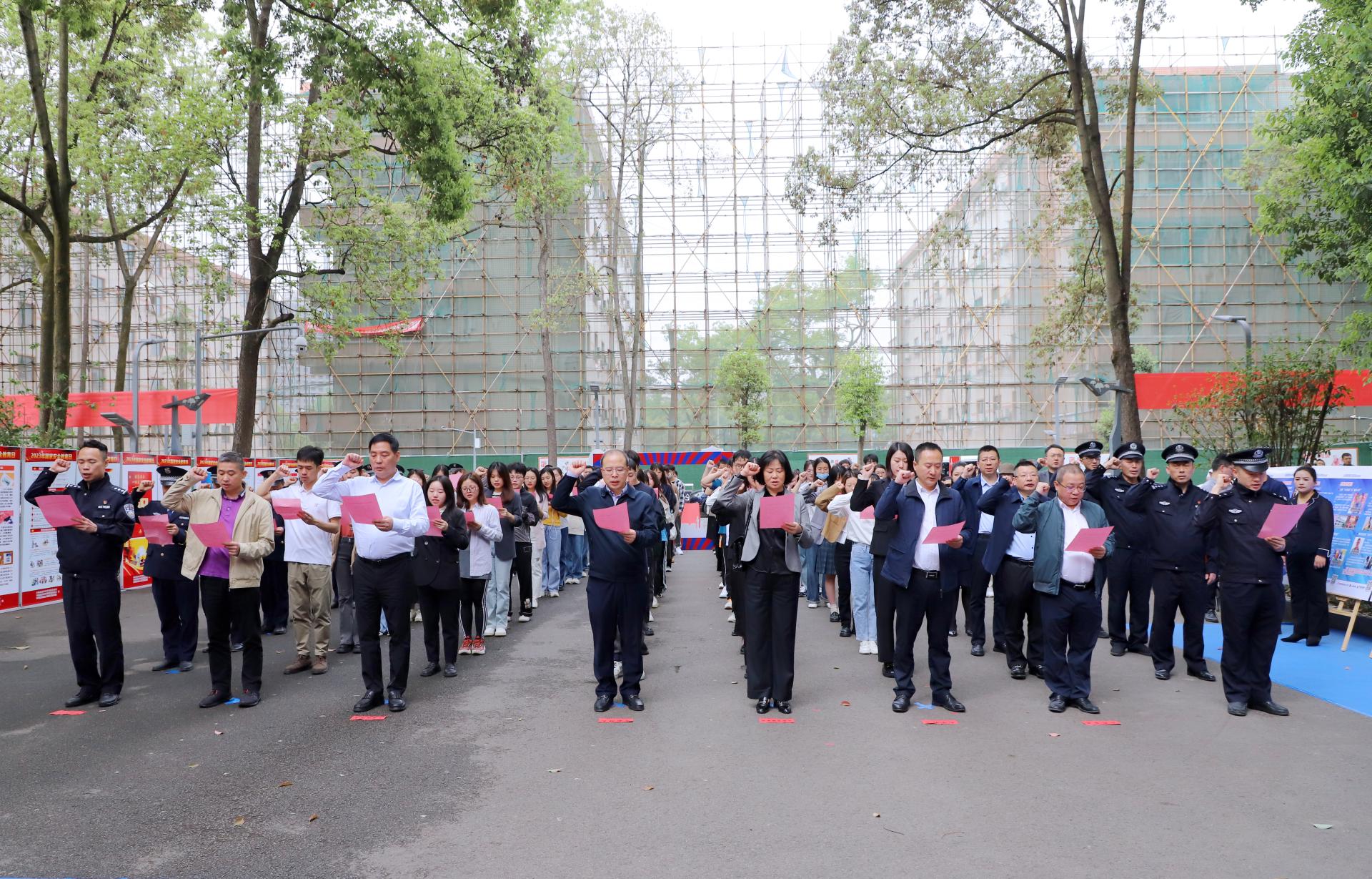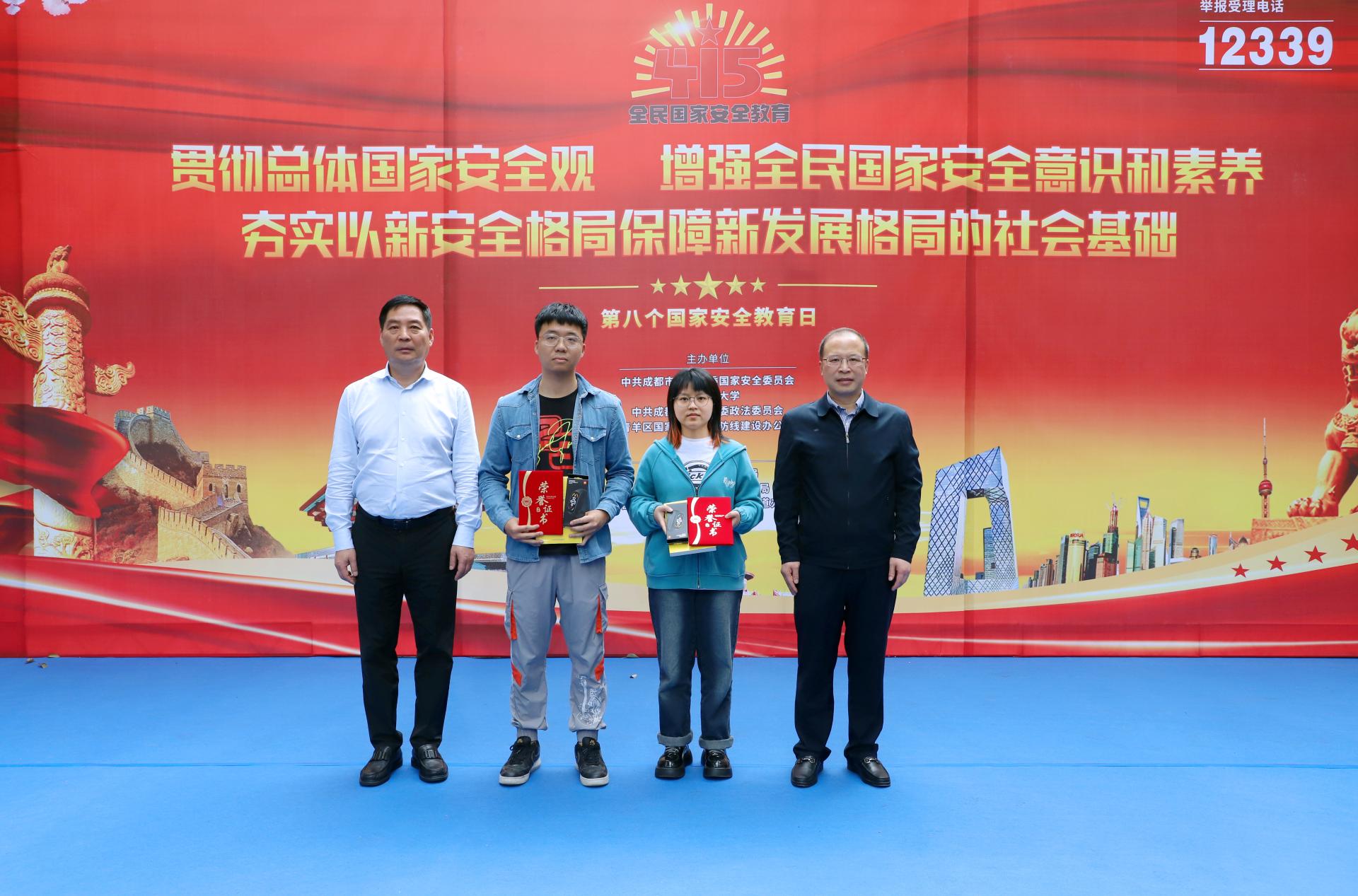 啟動儀式上,李永強、潘永革等為學校2023年國家安全教育日知識競答獲獎師生頒獎。全體與會人員進行了國家安全公益宣傳志愿者宣誓。成都市公安局青羊分局、學校保衛(wèi)處等部門向與會師生發(fā)放普法宣傳手冊,通過校園國家安全案例普及國家安全法律法規(guī)。