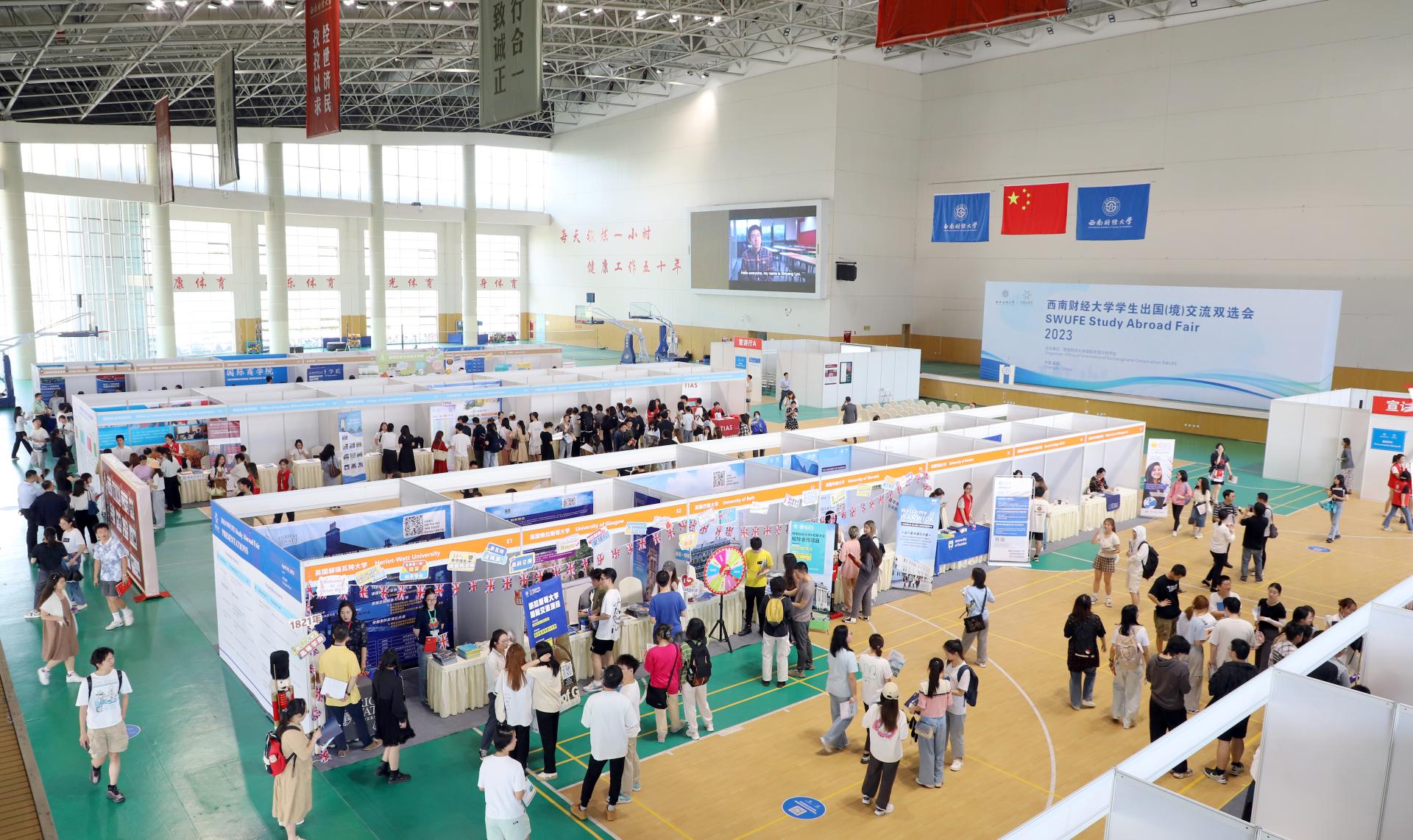 4月18日下午,2023年西南財經大學學生出國(境)交流雙選會在柳林體育館隆重舉行,近1200名學生和200個出國(境)交流項目參加此次展會。學校黨委副書記、副校長李永強出席開幕式。