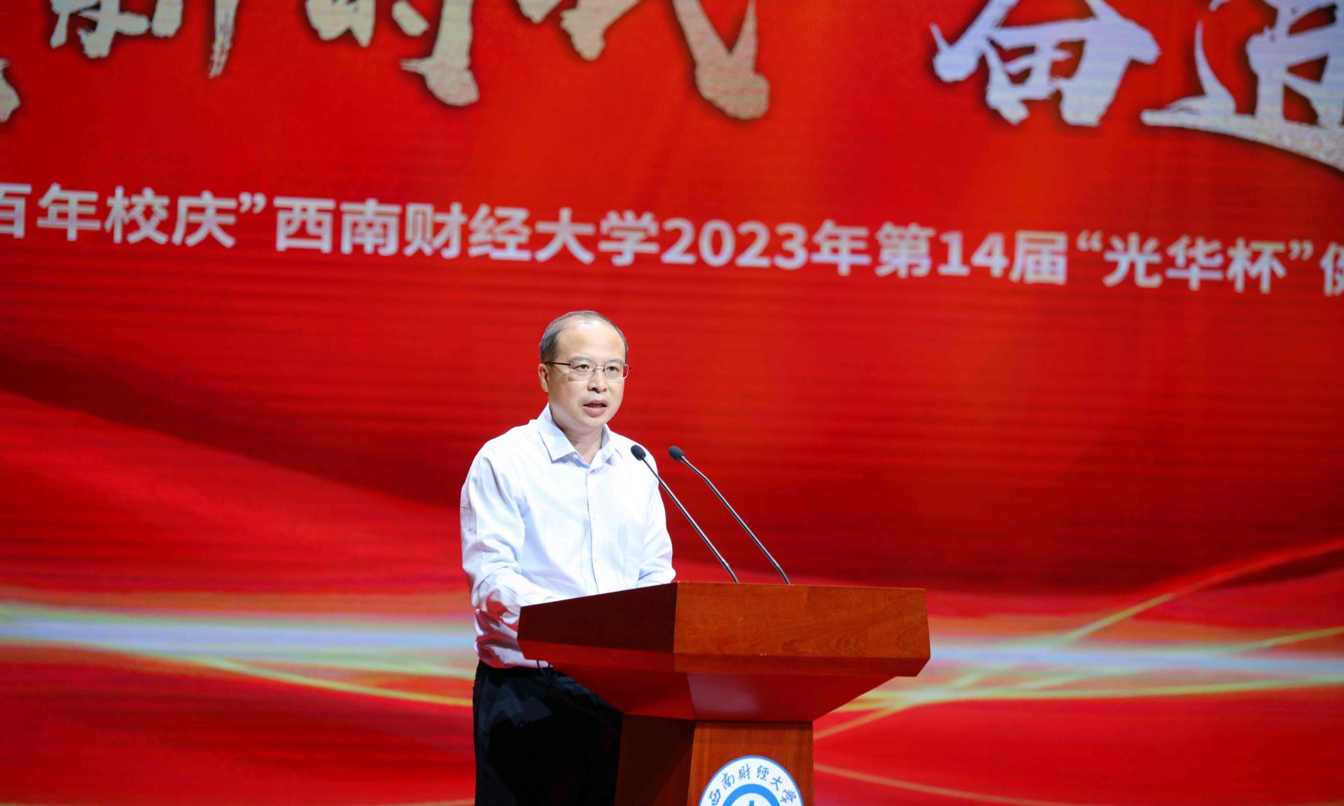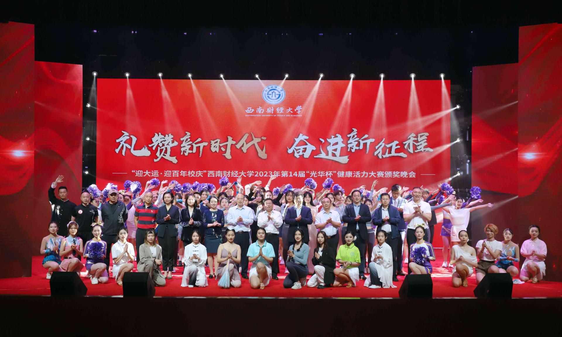 4月21日晚,“禮贊新時代·奮進新征程,迎大運·迎百年校慶”西南財經大學第14屆“光華杯”健康活力大賽頒獎晚會在學生活動中心800人廳隆重舉行。學校黨委書記趙德武,黨委副書記、副校長李永強,黨委副書記、紀委書記孫殿明,相關職能部門和學院(研究院)負責人,體育學院全體教職工與學生、獲獎同學代表等參加晚會。