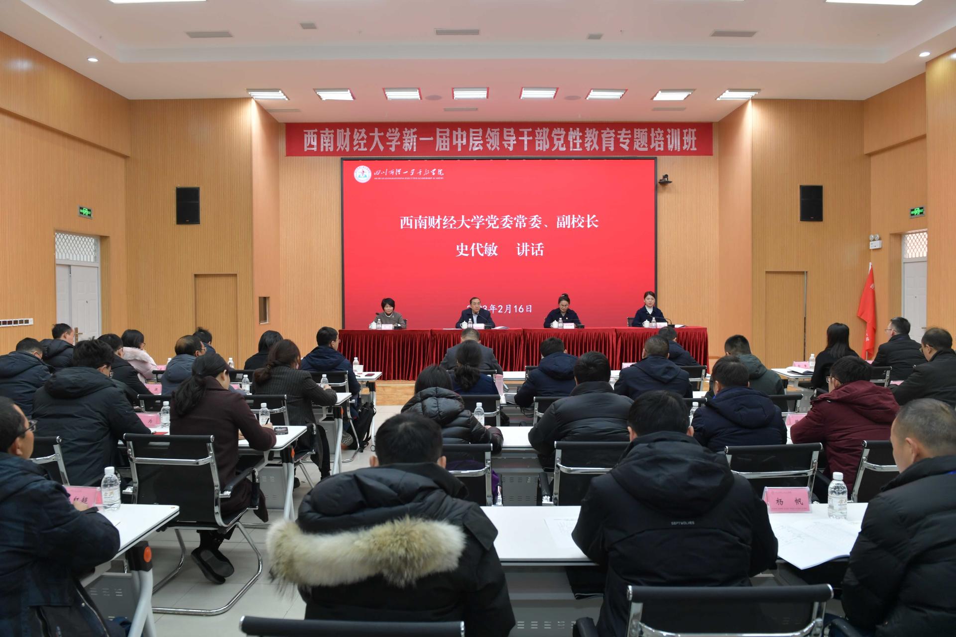 2月16日至18日,學(xué)校新一屆中層領(lǐng)導(dǎo)干部黨性教育專題培訓(xùn)班(第一期)在四川兩彈一星干部學(xué)院舉行,黨委書記趙德武出席聯(lián)學(xué)討論和結(jié)業(yè)式,為全體學(xué)員頒發(fā)結(jié)業(yè)證書并贈書,黨委常委、副校長史代敏出席開班式并講話。組織人事部負(fù)責(zé)人、新提任49名中層副職干部參加本次培訓(xùn)。