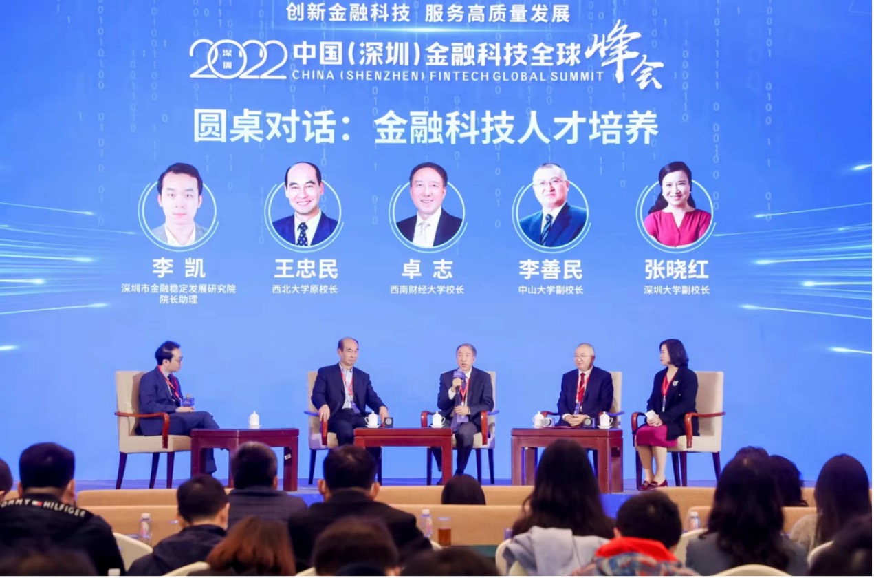 2月4日,作為首屆深圳國際金融科技節的重要一環,2022中國(深圳)金融科技全球峰會在深圳舉辦,峰會聚焦“創新金融科技 服務高質量發展”主題,由深圳地方金融局、香港金融局、澳門金融局等聯合主辦,來自國家部委、監管部門、高等院校、行業協會、金融機構、科技企業的境內外嘉賓和媒體代表齊聚一堂。我校黨委副書記、校長卓志出席會議并在主會場“圓桌對話”中與嘉賓交流研討。