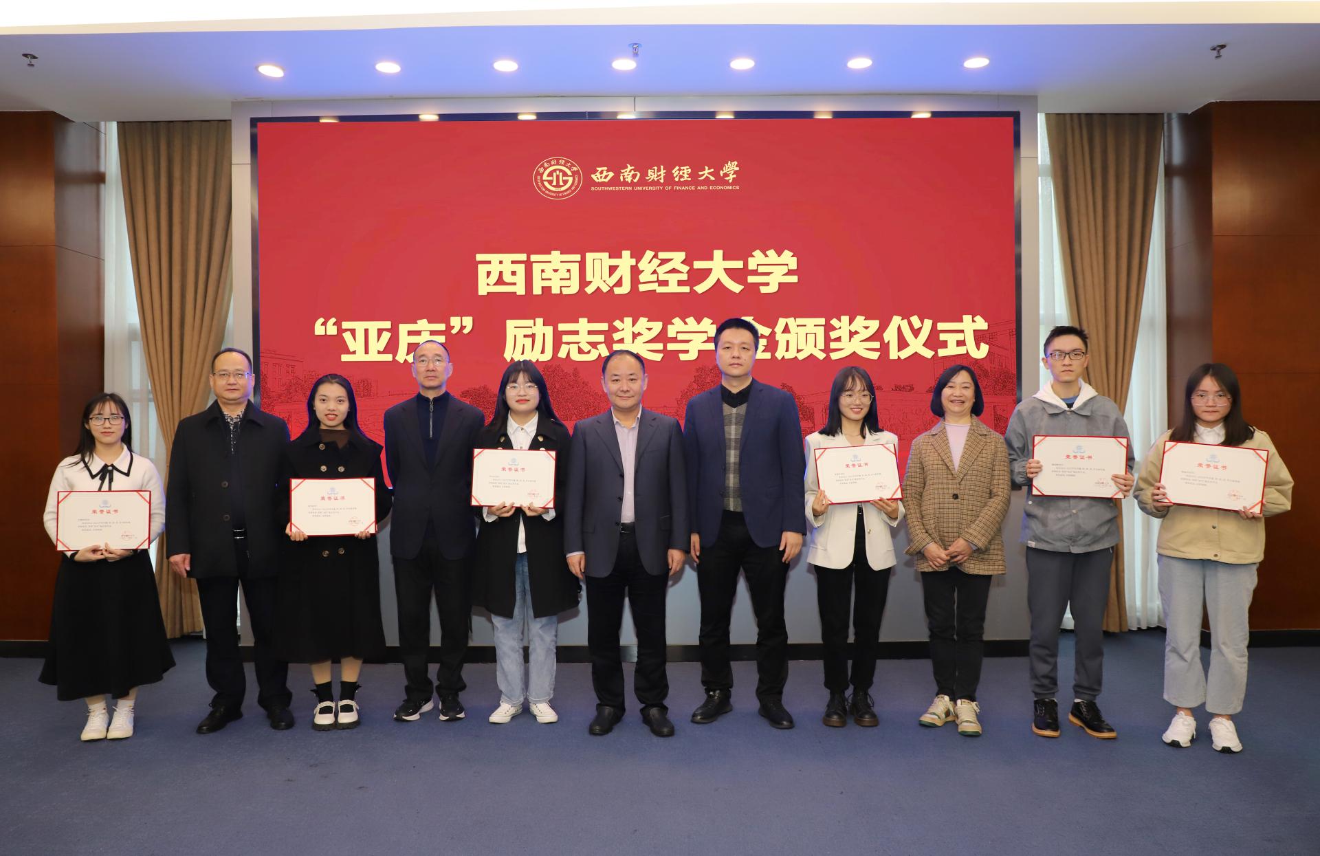 11月17日,2021-2022學年西南財經大學“亞慶”勵志獎學金頒獎儀式在柳林校區弘遠樓109會議室舉行。學校黨委常委、副校長張邦富,1993級校友、鵬華基金管理有限公司副總裁韓亞慶,校友工作辦公室、會計學院、數學學院相關代表及全體獲獎學生參加儀式。