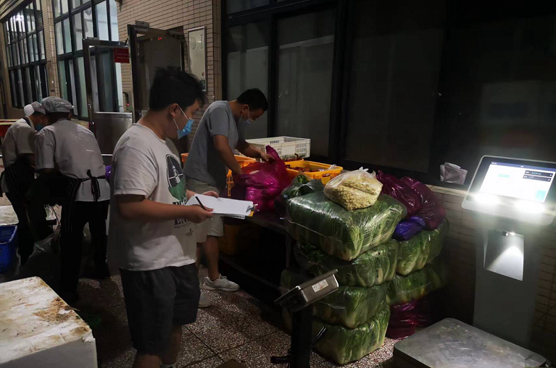 為了減少接觸傳播風(fēng)險,便民菜市提供的食材必須經(jīng)過分裝打包后才能出售。每天凌晨5點,在疫情防控一線入黨的蔡繼兵同志就要帶領(lǐng)工作人員趕赴便民菜市,開始理菜、稱重、打包、分裝,確保菜市能在8點半開張運營。蔡繼兵同志兩頭兼顧,一方面要保證一食堂的正常開餐,另一方面還要牽掛老師們的“菜籃子”,從早到晚都有“操不完的心”。即便如此,他在帶頭整理菜品時仍然嚴(yán)格要求,確保每天上架食材品質(zhì)良好、種類豐富。在結(jié)束食堂一天的供餐保障后,他又帶領(lǐng)員工收菜理菜,常常忙到深夜凌晨。一天十幾個小時的辛勤付出,讓他得到師生的一致好評。教職工紛紛夸贊菜品質(zhì)量好、價格低、很新鮮,認(rèn)為菜市考慮周到、后勤保障有力。