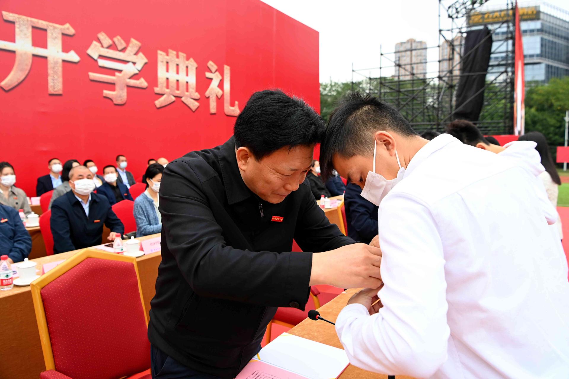 典禮儀式上,劉立云和學校領導為新同學代表佩戴校徽,全體新同學現場集體佩戴校徽并莊嚴宣誓。