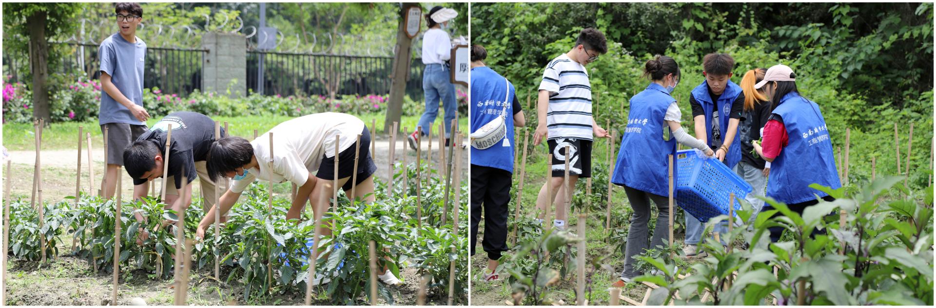 6月7日下午,各學院(研究院)近百名同學走進“耕讀田園”,在各培養單位的責任地里開展采摘活動。田間地里,大家爭相勞動,把菜籃裝得滿滿當當——翠綠鮮嫩的黃瓜、個大飽滿的青椒、紫得發亮的茄子……本次集中采摘共收獲農產品上千斤,同學們一學期的辛勞付出在此刻化為豐收的喜悅,譜寫出一曲田園上的勞動之歌。本學期依托《果蔬種植勞動技能實訓》第一、二課堂,同學們認真學習農具使用、間苗技術、松土技巧等知識,參與栽種、澆水、松土、除草、施肥等各個環節,在親身體驗中感受勞動的幸福和快樂。本次集中采摘結束后,同學們還在烹飪技能實訓基地舉辦了主題班會,暢談參與勞動實踐的心得體會,分享所思所想所感所悟。會后同學們共同將采摘的新鮮蔬菜烹飪成為一道道美味佳肴。