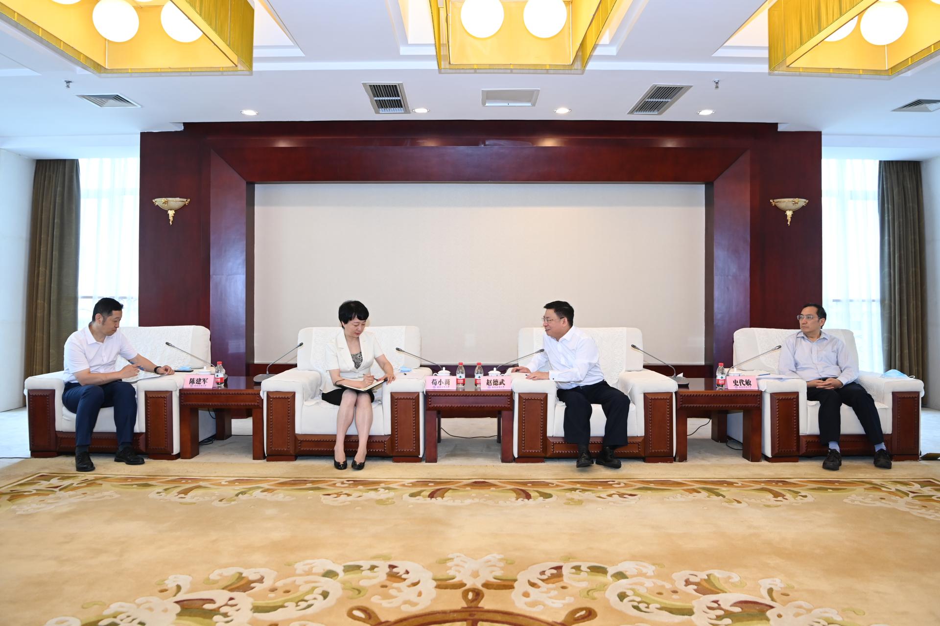 6月16日,內江市委常委、組織部部長茍小莉一行15人到訪,與我校就市校戰略合作事宜進行商議。內江市政府副市長陳建軍、何仁洋,市委副秘書長、政研室主任吳德生,市委副秘書長陳江華,市發展改革委主任詹財榮,市科技局局長蘇曉蓓等陪同調研。學校黨委書記趙德武在騰驤樓貴賓廳會見來賓,黨委副書記、校長卓志,黨委常委、副校長尹慶雙、史代敏及相關職能部門負責人參加座談。史代敏主持座談。