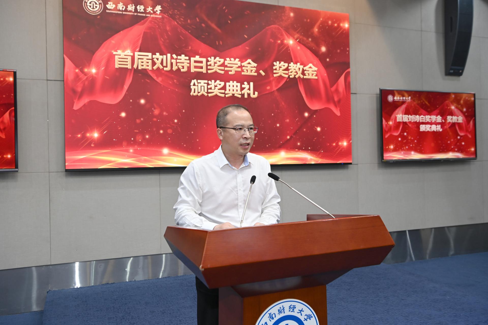 6月15日上午,西南財經大學首屆劉詩白獎學金、獎教金頒獎典禮在弘遠樓101會議室隆重舉行。黨委書記趙德武教授,黨委副書記、校長卓志教授,黨委副書記曾道榮教授,黨委常委、副校長李永強教授,原副校長劉燦教授,原副校長丁任重教授,學校相關職能部門負責人,獲獎教師和獲獎學生參加典禮。李永強主持典禮。