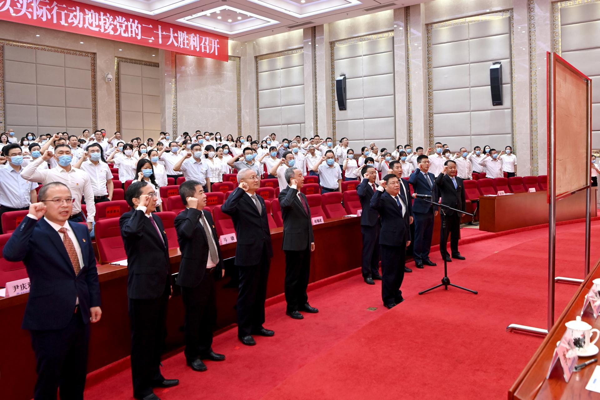 趙德武帶領全場新黨員入黨宣誓、老黨員重溫入黨誓詞,與會同志一同在黨旗下接受洗禮,牢記初心使命,進一步堅定為共產主義事業奮斗終身的信心和決心。