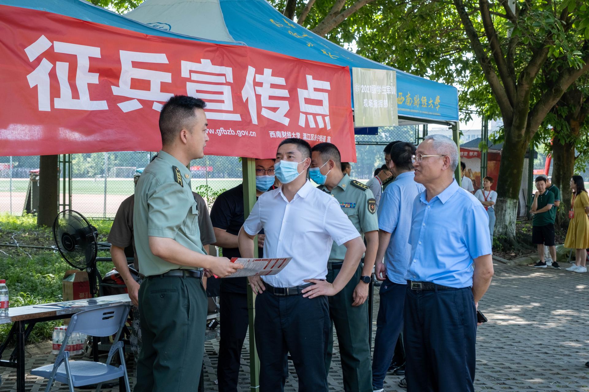 2021級本科學生軍訓工作已經開始,連日來,軍訓工作有序進行。7月7日上午,四川省教育廳體衛藝處處長唐克紅、四川省軍區戰備建設局處長汪濱一行來到我校,對2021級本科學生軍訓工作進行檢查指導。成都市警備區、溫江武裝部相關負責同志、我校黨委副書記曾道榮陪同檢查。