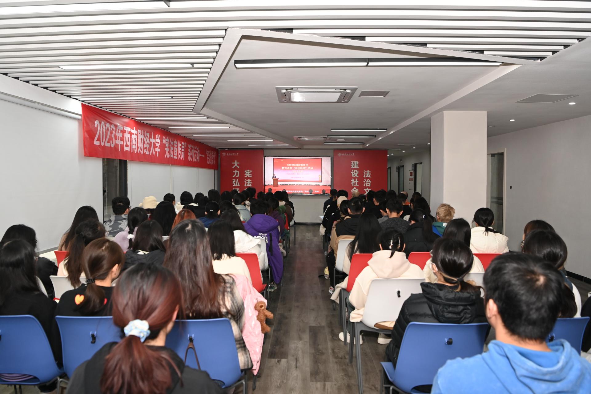 活動中,現場師生通過教育部全國青少年普法網收看了2023年教育系統國家憲法日“憲法晨讀”活動網絡直播,并同步跟讀。全場師生齊聲誦讀憲法原文,合唱《憲法伴我們成長》歌曲,觀看第八屆全國學生“學憲法 講憲法”活動全國總決賽演講比賽優秀選手展演,感受憲法的權威與力量,強化憲法意識,弘揚憲法精神,培育法治文化,進一步明法于心、守法于行。2023級數字經濟專業本科生陳文青同學表示,“憲法晨讀”活動讓我深刻感受到維護憲法權威、弘揚憲法精神的重大責任。我將把尊崇憲法化作深沉滿懷的愛國情、與有榮焉的自豪感、無比堅定的自信心,提高法治素養,做維護憲法的新時代大學生。2022級經管國際化創新實驗班謝璇同學表示,在“憲法晨讀”活動中,我們一起朗讀憲法,深刻感受憲法與國家前途、民族命運、人民幸福息息相關,深切理解憲法蘊含的國家大義和法治精神,更加懂得守護憲法就是守護我們的美好生活。