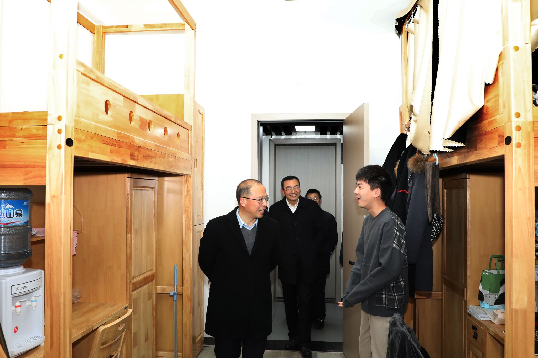 李永強、馬永強一行來到光華校區四食堂、光華校區三期改造現場、家屬區、學生公寓和柳林校區學生公寓、三味堂前區域改造現場,細致詢問在建工程管理、學校智慧后勤系統、食品衛生安全、學生管理等情況,實地查看圖書館、信息化與大數據管理中心、誠正樓等重要場所,詳細了解消防安全、學校機房設備運行情況、網絡與信息安全保障工作等情況,對一線員工辛勤工作表示誠摯感謝,對留校學生給予親切慰問,并就切實做好寒假期間安全防范工作提出要求。