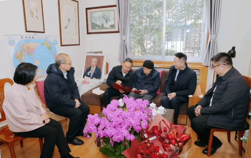2025年新春佳節來臨之際,民盟四川省委會主委、省政協副主席劉旭光,省委統戰部副部長、省民族宗教委黨組書記陳武一行來校看望民盟四川省委會原常務副主委、省政協原副主席、學校名譽校長劉詩白教授,送上深切關懷和新春美好祝福。學校黨委副書記、校長李永強,黨委副書記謝紅,民盟四川省委會專職副主委、秘書長勾永階陪同看望。